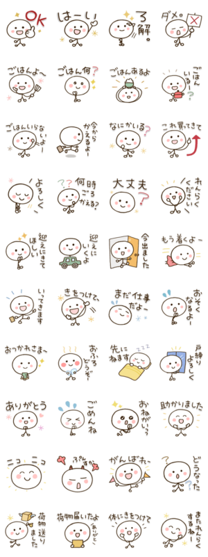 誰でも使える、丸いキャラクターの家族連絡用スタンプです。 家族/丸い/挨拶/連絡/ファミリーひらりーー より発売
