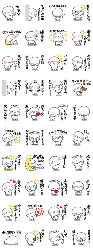 しろまるのも~っと相手を優しく思いやるスタンプです。みんなでずっと使える内容を揃えましたのでスタンプ初心者の方にもオススメです。【作:いしいともこ】