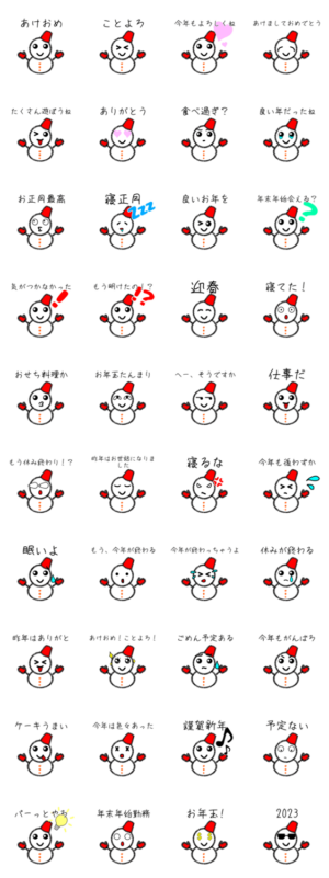 あけおめ★雪だるまのユキちゃん★正月版 スタンプ画像一覧