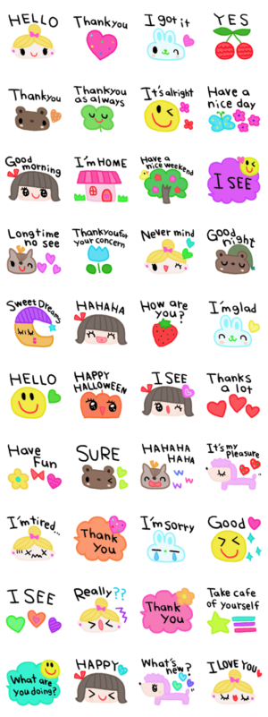 シンプルな日常会話スタンプです。英語スタンプnenerin より発売