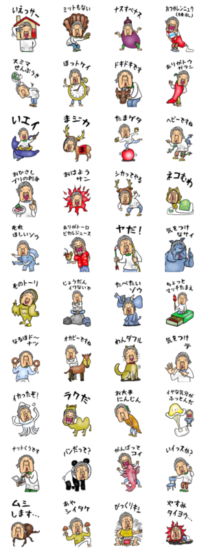 昭和ばあのダジャレスタンプ【BIG】バージョン第5弾です。ベタなダジャレからマニアックなダジャレまで、昭和レトロなおばあさんが繰り出す、古き良きスタンプです。 ※このスタンプはトークルームで大きく表示されるBIGスタンプです。Brody Machine より発売