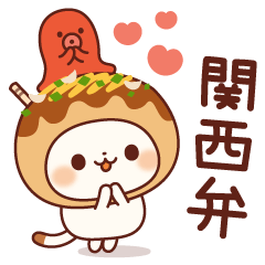 友達や家族、恋人に♪たこ焼きをかぶった可愛いネコさんによるコテコテの関西弁スタンプです!毎日のちょっとしたやり取りなど日常会話にとっても便利です。(白猫)