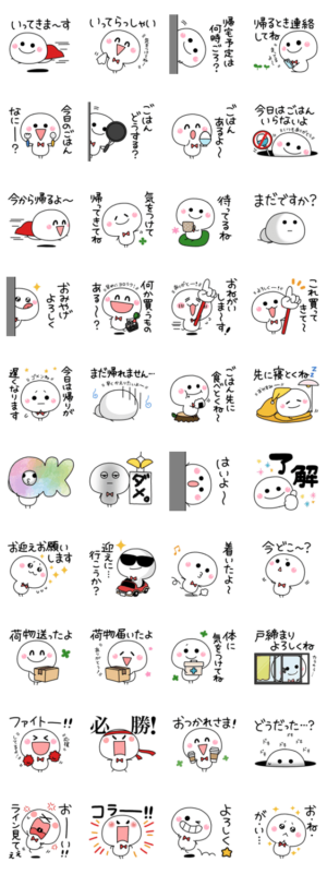 もちまるの家族連絡用スタンプです。祖母・祖父・母・娘・息子・子供・孫・兄・姉・弟・妹、どの立場でも使えます♫