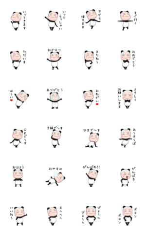大人かわいいパンダ全身タイツちゃんのスタンプです。挨拶やお礼など日常よく使う言葉を集めました。家族や友達との連絡にどうぞ。cosotto より発売