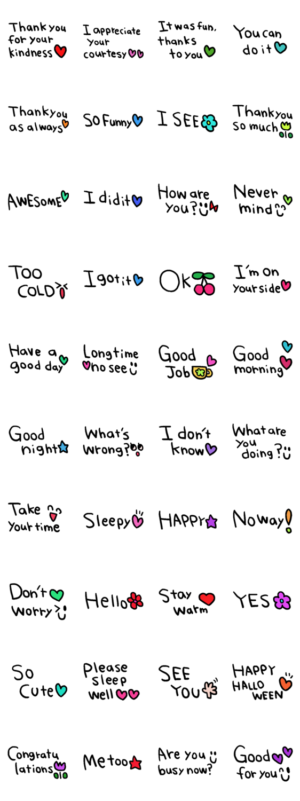 シンプルな日常会話スタンプです。英語スタンプnenerin より発売
