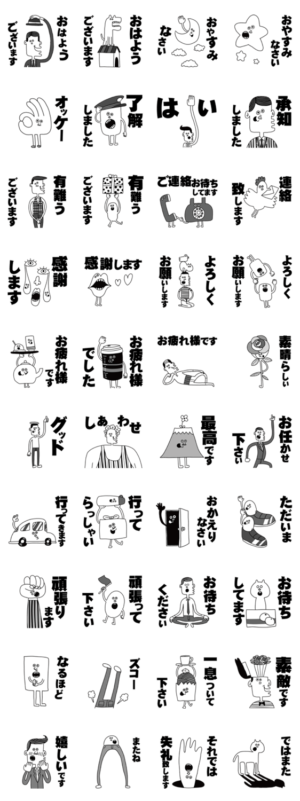 おっさんも女性もみんなシンプルに使えるスタンプです。エムジダ より発売