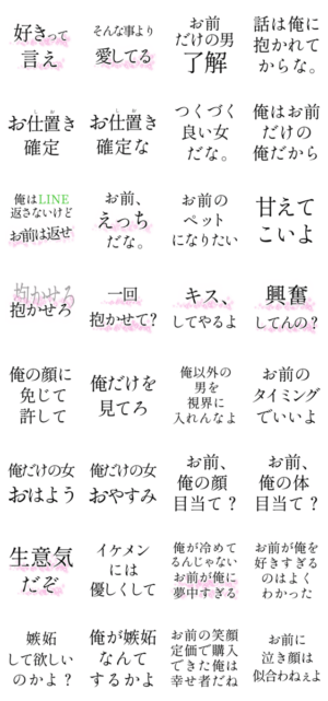 イケメン台詞を名言かのように送れるスタンプ【もちろんブスも使える】【面白い/ネタ/煽り/金欠/酒/ニート/社畜/仕事/飲み会/恋愛/彼氏/彼女/浮気/カップル】