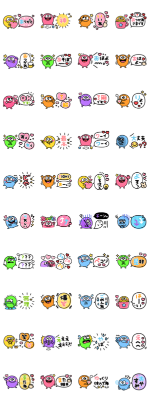 カラフルモンスターの1番伝わる吹き出しスタンプ♡ シンプルで見やすいデカ文字シンプルで1番使える♡敬語も MIX☆ 可愛いくちょこんと押せるスタンプです♡秋色ちゃぴ より発売