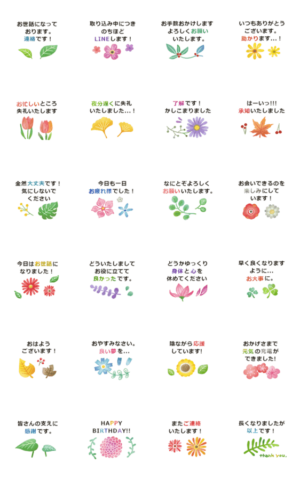 花、植物、葉っぱ、季節を感じられる敬語気遣いの言葉アニメーションスタンプです。
