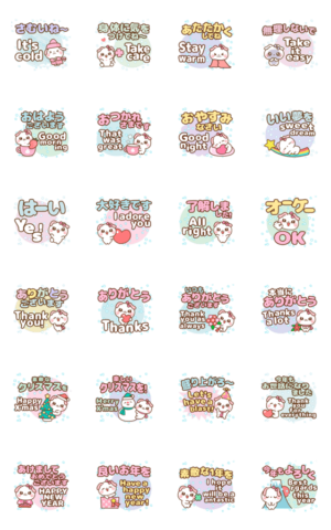 ❤️飛び出る♡雪の年末年始[和/英]でか文字 スタンプ画像一覧