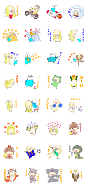 オキナインコやセキセイインコ、シロハラインコ等の可愛いスタンプです。 たくさん使って下さい。Tenpura より発売