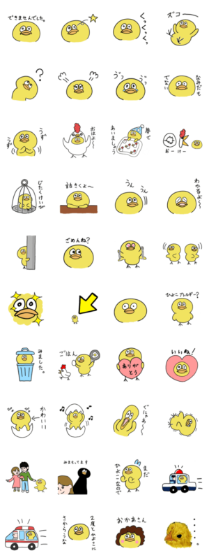ひよこがメインの題材のスタンプ。かわいらしいというよりはシュール成分が多め。少し個性的なスタンプもある。