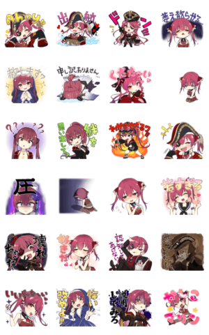 ホロライブマリンのスタンプ。表情豊かで可愛いです。オタク仲間には使える