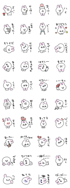 甘やかされて育った。シュールなミニ白うさぎのスタンプです。eribo より発売