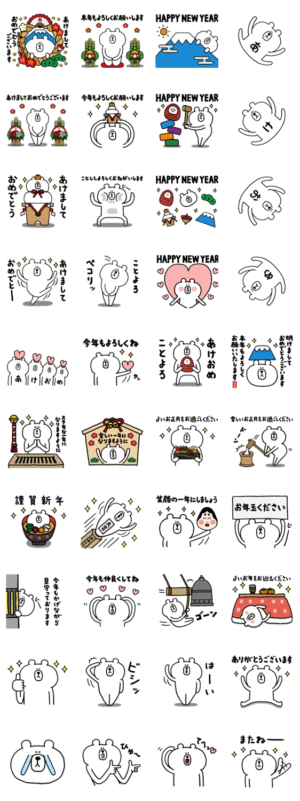お正月に使えるゆるいクマのスタンプです。(あけおめスタンプ 正月 新年 年末年始 年賀状 あけおめ ことよろ あけましておめでとう くま 敬語)※2023/1/3(火)23:59までに購入すると特典「LINEおみくじ」がもらえます。グリンピース より発売