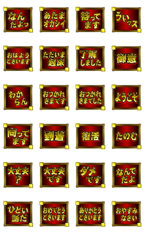 金文字が飛び出る勢いで拡大ループするインパクトのあるデカ文字ポップアップスタンプ第7弾です、おはようからおやすみ、よく使う言葉を中心に送れます