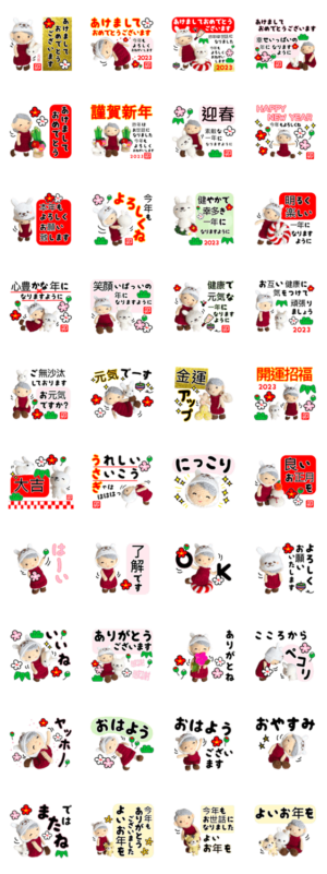 あみぐるみ おばあちゃん お正月2023 スタンプ画像一覧