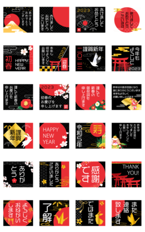 かっこいい日本をイメージした大人クールな年賀状です。ポップアップなので画面からデザインが飛び出します♪一味違う黒×金×赤×白の個性的な配色で仕上げました♪※2023/1/3(火)23:59までに購入すると特典「LINEおみくじ」がもらえます。ウォームスクリエイト より発売