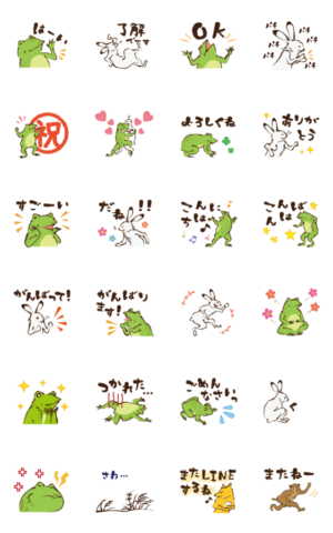 人気の鳥獣戯画をモチーフにした、アニメーション文字スタンプです。動くカエルやウサギが、あなたの日常会話を彩ります。