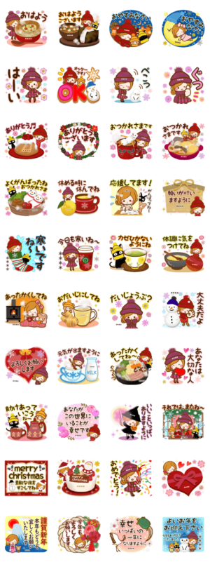 ほっとするあたたかい食べ物、飲み物が多めで、寒い季節にぴったりのやさしい日常スカスタムタンプです♪