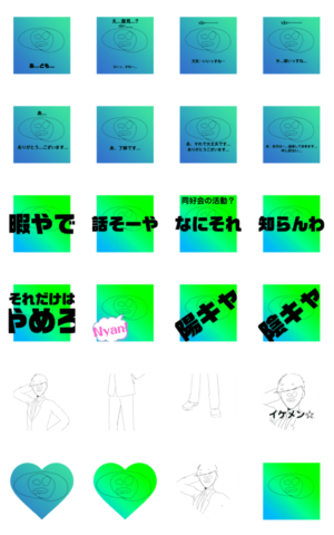 コミュ障のオムレツマンと文字がデカいオムマンENとイケメンオムマンのスタンプ詰め合わせセットです。この量で120円はお得!ゆくねこ! より発売