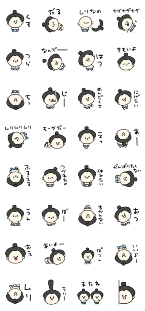 一生やる気を出す気がない。シュールなミニお相撲さんのスタンプです。eribo より発売