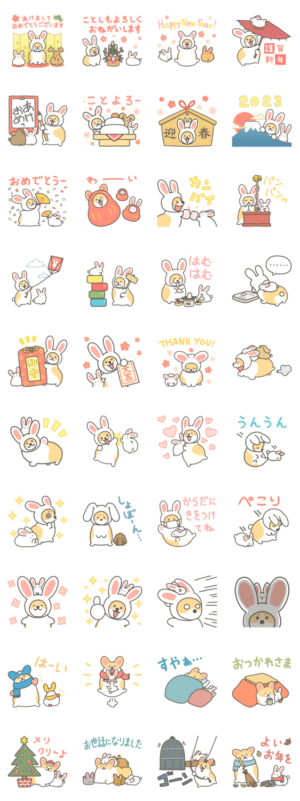 ウサ×コギのあけおめスタンプ2023 スタンプ画像一覧