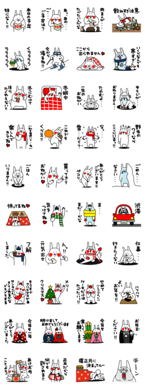 全力でうざい全力でおちょくるあざとかわいいうさぎのクリスマス・忘年会・大晦日・正月・年末年始・新年会に使える冬の挨拶・基本セットのスタンプ。家族や友達、恋人に。