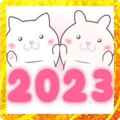 うさぎとにゃんこがあけおめスタンプでお祝いします。日常でも使えるスタンプもあります。※2023/1/3(火)23:59までに購入すると特典「LINEおみくじ」がもらえます。