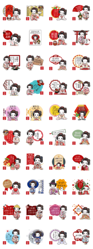 お正月や年間のイベントに使える舞妓ちゃんのカスタムスタンプ。「卯年」等の干支を入れたり、名前を入れて、自分だけの判子を押したようなオリジナルスタンプが作れます。※2023/1/3(火)23:59までに購入すると特典「LINEおみくじ」がもらえます。サエコロモン より発売
