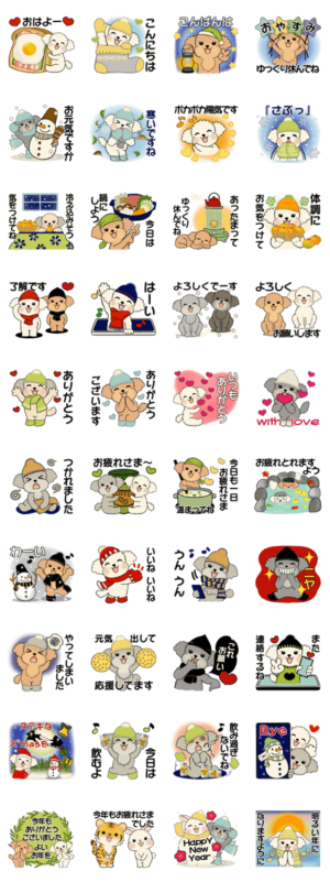 冬に使いたくなる可憐なわんちゃんスタンプです。トイプードル好きにはたまりませんね。