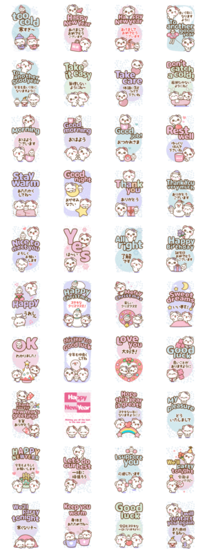 雪降る冬の日常とクリスマスや年末年始に幅広く使える「たれ耳BABY」の[英語&日本語]でか文字スタンプです♫ バイリンガルに会話をお楽しみください♬ ※このスタンプはトークルームで大きく表示されるBIGスタンプです。プリン より発売