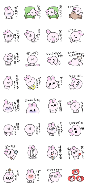 人生色々。シュールなミニうさぎのスタンプです。eribo より発売
