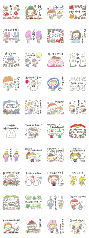 毎日使えるかわいい秋冬スタンプ!ハロウィンやクリスマス、年末年始、お正月、お誕生日などイベント行事にも。敬語であいさつしたい人、音楽やピアノが好きなあなたにも!