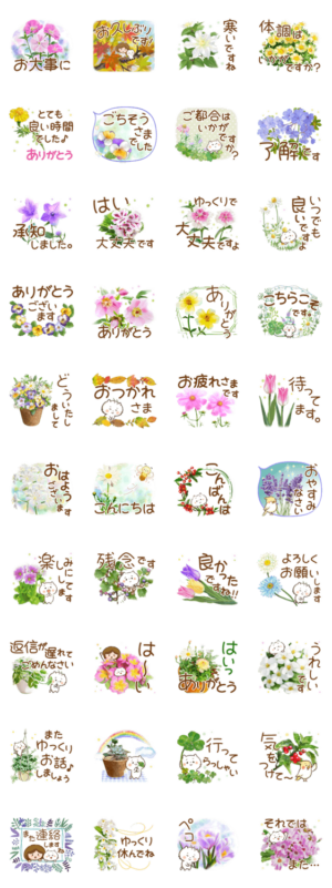 綺麗な花と白猫と女の子。日常よく使う言葉。毎日使いやすい丁寧語。秋・冬・飽きの来ない絵 Byよつばらんどよつばらんど より発売