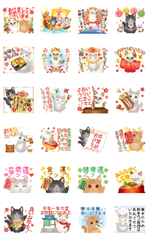 ふわねこたちの毎年使える年末年始ポップアップスタンプ!可愛く飛び出す猫たちがお祝いします!お正月の挨拶、大晦日、お守り、年賀状など日本の風物詩が盛りだくさん!※2023/1/3(火)23:59までに購入すると特典「LINEおみくじ」がもらえます。mayurimu より発売
