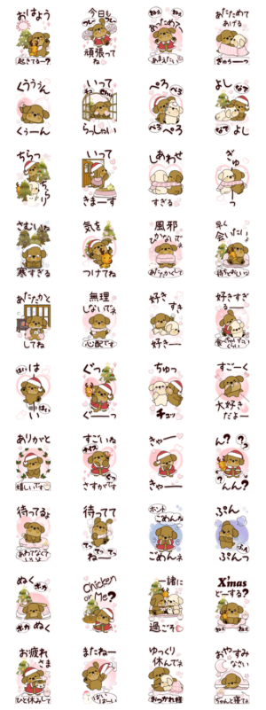 プードルちゃんの冬に恋人に送れるスタンプです。時々クリスマス&サンタクロース。