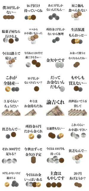 貧乏人の言い訳【金欠・面白い・実写】 スタンプ画像一覧