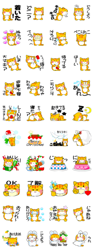 いつでも楽しく使える可愛い3匹の猫さん達の冬の茶トラ編。クリスマスやお正月スタンプも少しあります。ohausa より発売