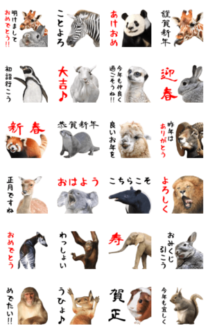 冬☆うさぎと動物園の年末年始☆飛び出す スタンプ画像一覧