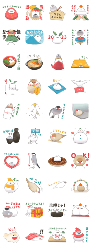 お餅のような文鳥さんたちと新年のお祝いをしよう!※2023/1/3(火)23:59までに購入すると特典「LINEおみくじ」がもらえます。ぽこ より発売