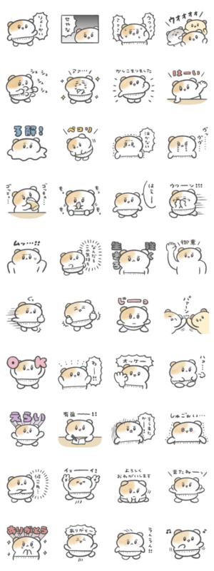 どこかちいかわ感のあるハムスターのスタンプ。返信がこれで楽になるかどうかは人によるだろうが、汎用性は普通くらいにはある。