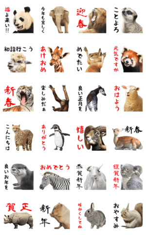 ポップアップ!動物園のお正月年賀スタンプ スタンプ画像一覧