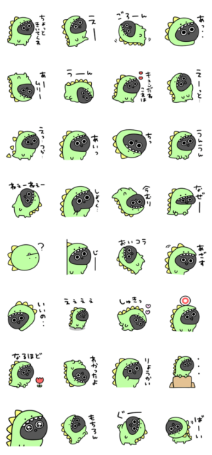 恐竜になった。シュールなミニ黒猫のスタンプです。eribo より発売