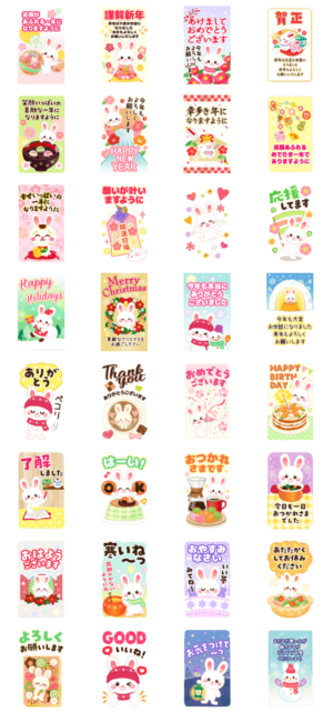 年末年始・冬~春に使える縁起の良いウサギ年のBIGスタンプ♪敬語・気づかい多め♡クリスマス.Xmas/大晦日/お正月/お祝い/合格/誕生日/卒業/ありがとう/デカ文字/卯年※2023/1/3(火)23:59までに購入すると特典「LINEおみくじ」がもらえます。紅おれんじ より発売