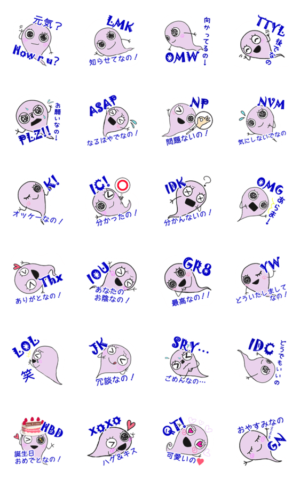 バケどこ英語スタンプ ひとだま(魂)編 スタンプ画像一覧