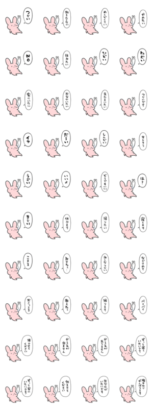 疲れたウサギのスタンプです。働きたくない時とか休みたい時や帰りたいとき、文句のある時とか愚痴を言いたい時とか煽られた時や煽りやケンカ用にどうぞ。オカヤマ より発売