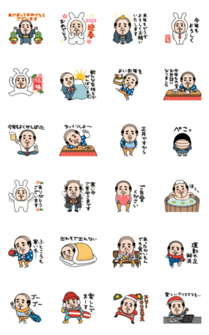 父の年末年始スタンプです。うざがらずに使ってあげましょう。あんまり邪険にすると父泣いてしまいます