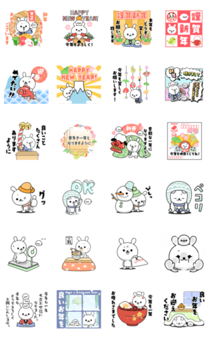 画面いっぱいに飛び出す!ひねくれうさぎの動くあけおめスタンプです!年末年始、お正月の挨拶に。卯年/兎/ウサギ/正月/新年/年賀状/冬/敬語/あけましておめでとうetc※2023/1/3(火)23:59までに購入すると特典「LINEおみくじ」がもらえます。