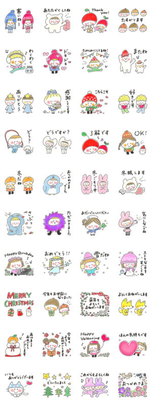 毎日使える、かわいい冬スタンプ。クリスマス、年末年始、お正月、バレンタイン、お誕生日などイベント行事にも。音楽、ピアノが好きなあなたにもおすすめです!